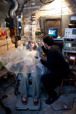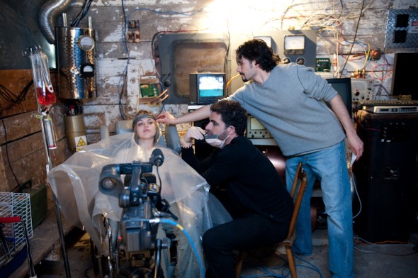 Here are some behind-the-scenes movie stills from Day 2 on set of Kenneyville!  On Friday we filmed in a creepy barn in Cobourg, Ontario.  It was a really cool set, and Sean Samson was there as a Makeup FX Consultant.  He just finished working on Saw VII, and built a drill so we could drill into Vanessa’s head.