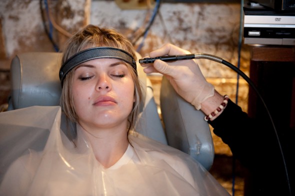Sean Samson prepping Vanessa Broze‘s head for drilling!