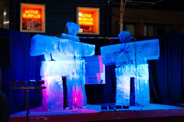 Singing golems on Queen Street West.  This was called Angels Singing by Life of a Craphead.